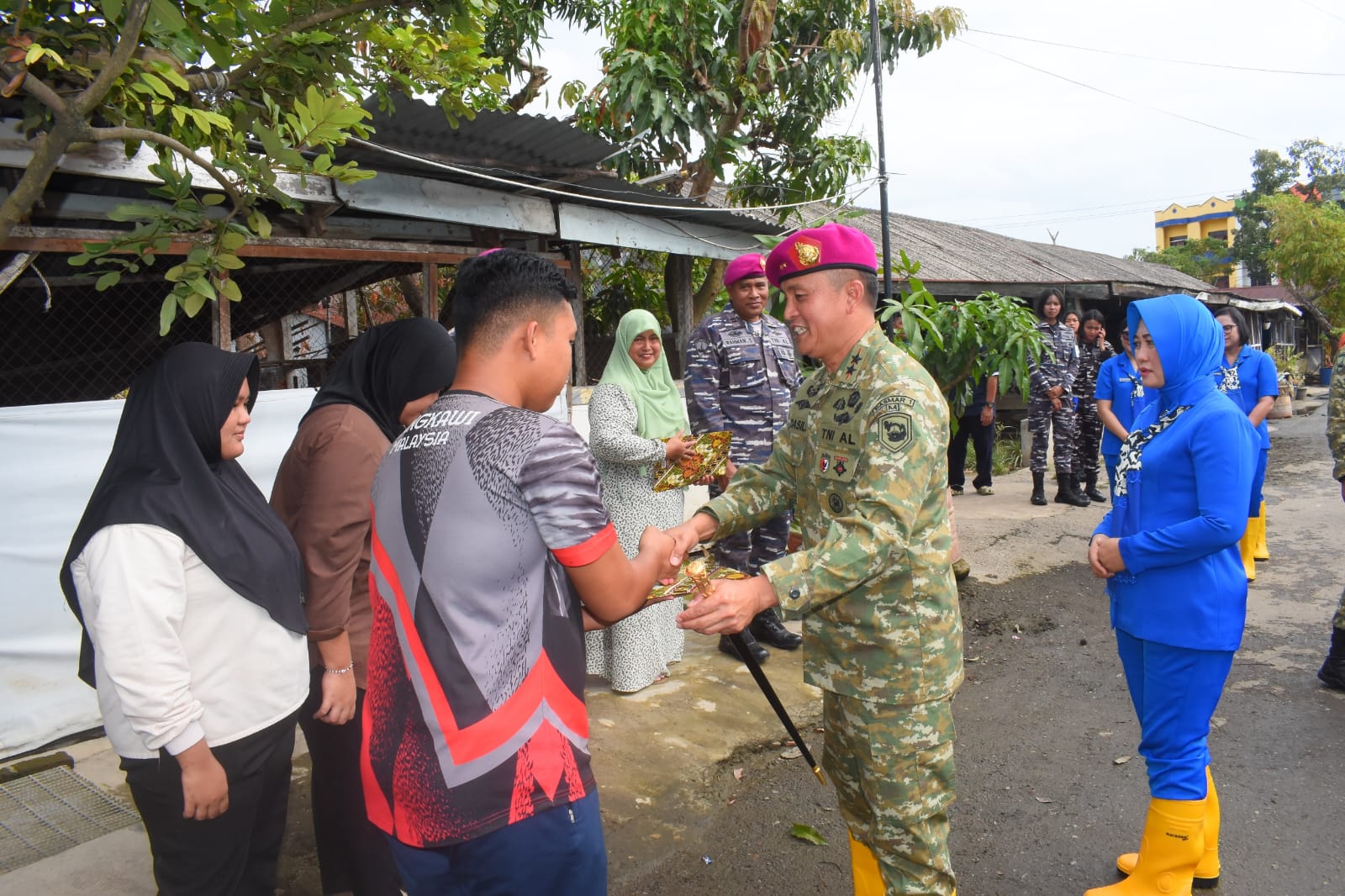 Danpasmar 1 dan Ketua Korcab Pasmar 1 Ny. Ade Ili Dasili memberikan dukungan dan motivasi kepada prajurit yang terkena dampak.
