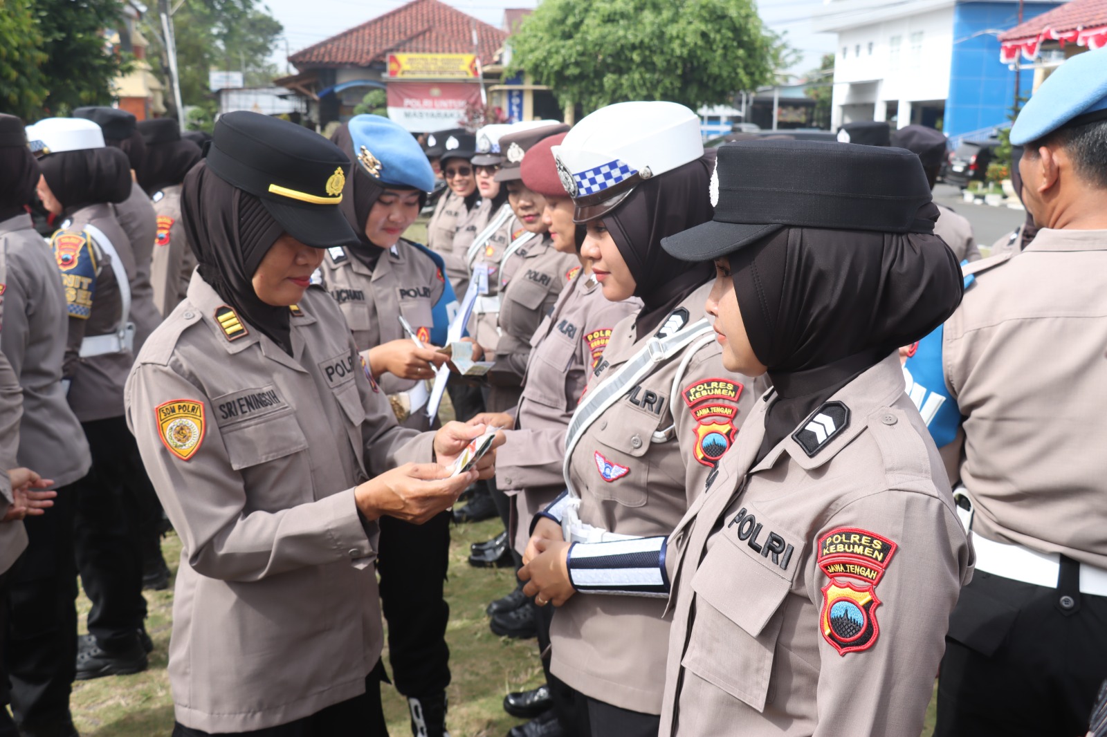 Pemeriksaan dipimpin langsung Kapolres Kebumen AKBP Eka Baasith Syamsuri dan melibatkan sejumlah pejabat utama Polres Kebumen. Pengecekan dimulai dengan apel personel Polwan, kemudian dilanjutkan pemeriksaan kelengkapan surat diri, seperti KTP, Kartu Tanda Anggota (KTA), SIM, dan STNK.