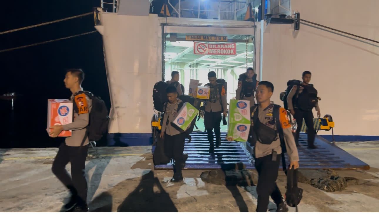 SUMUT – Kapal PT Pelni yang mengangkut pasukan dan bantuan logistik Polri tiba di Pelabuhan Belawan, Sumatera Utara, Sabtu (20/12/2025) pukul 05.00 WIB.