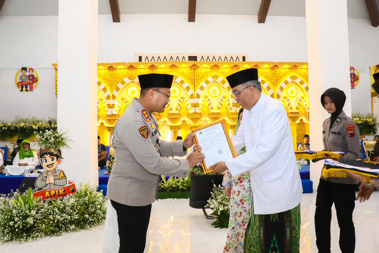 Grup hadroh “Santri Brambang” dan “Santri Bhayangkari” Polres Brebes juga diresmikan, membawakan lagu Lir Ilir dan Shalawat Badar.