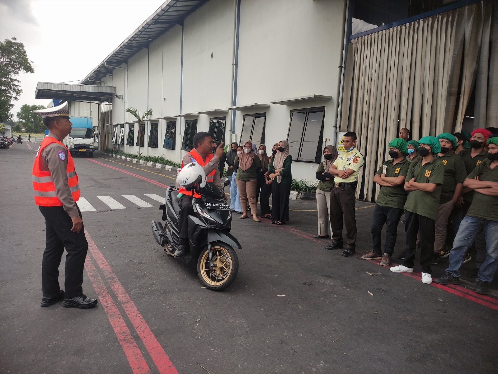 “Keselamatan berlalu lintas bukan hanya urusan di jalan raya, tapi berdampak langsung pada kehidupan keluarga dan keberlangsungan kerja. Karena itu kami hadir di lingkungan industri agar kesadaran itu tumbuh dari tempat kerja,” ujar AKP Suwoto.